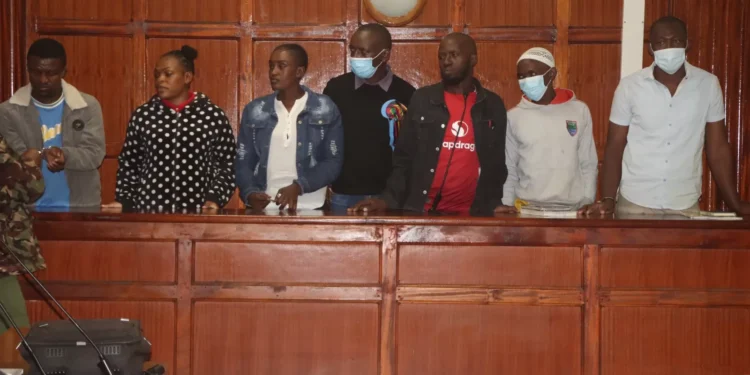 In the case, Eric Isabwa alias chairman, Raphael Kimani alias Kim Butcher, Mustapha Kimani alias Musto, Stephen Astiva alias Chokore, Jane Wanjiru alias Shiro, Margaret Njeri and Simon Wambugu are charged with robbery with violence case that led to the murder of late George Muchai, his driver and two bodyguards.